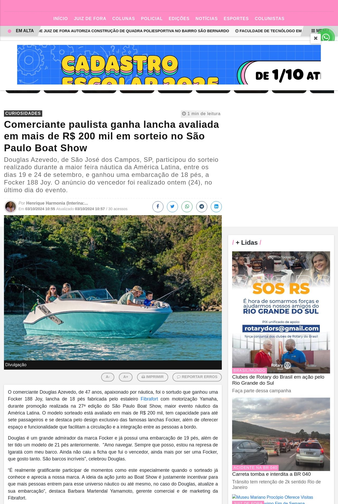 Comerciante paulista ganha lancha avaliada em mais de R$ 200 mil em sorteio no São Paulo Boat Show - RCWTV